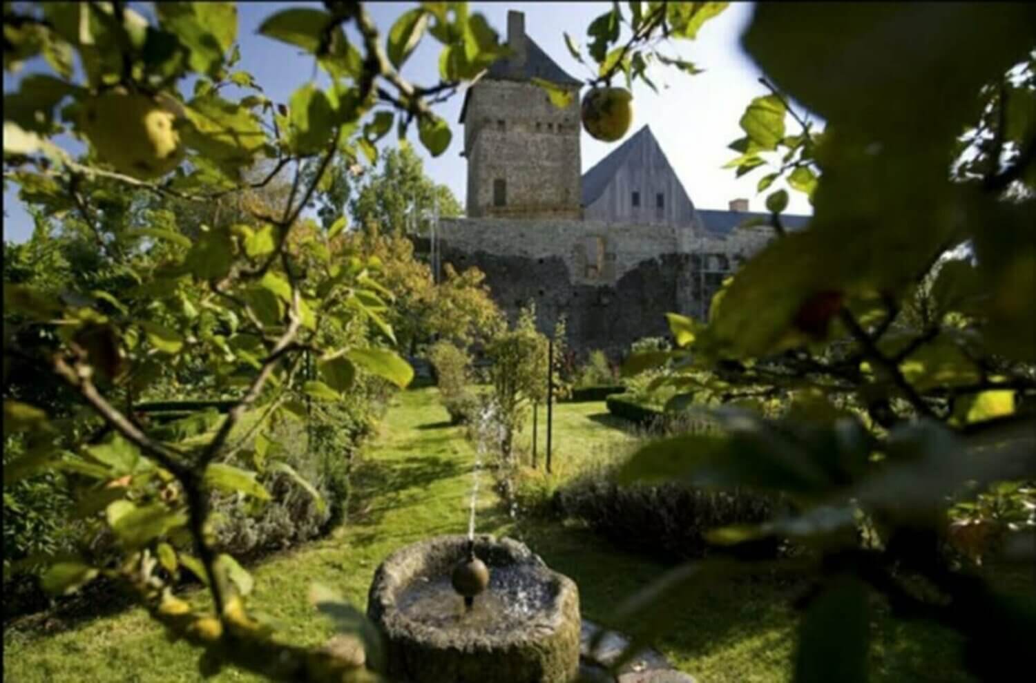 Dominant le jardin de sa haute toiture, le Vieux Logis du XIVe siècle, encore en ruines en 2005, a retrouvé sa silhouette grâce à la récente restauration.