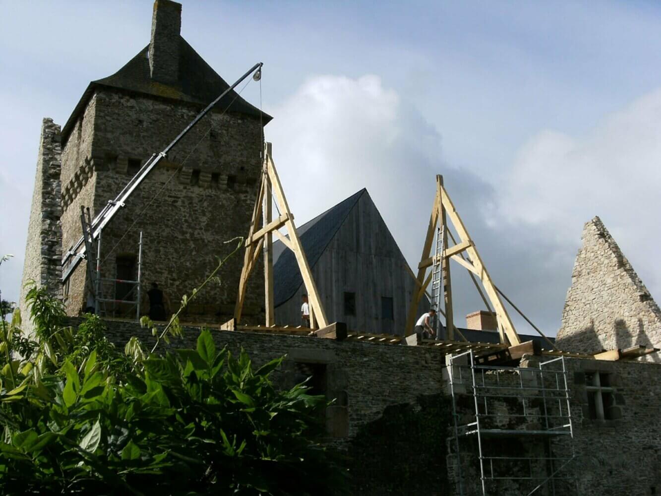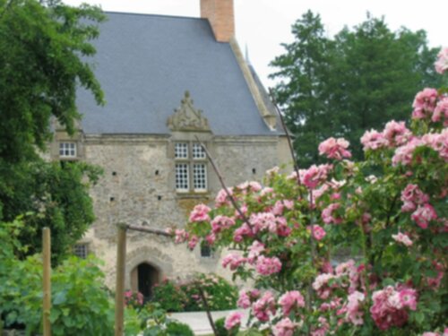 Dominant le jardin de sa haute toiture, le Vieux Logis du XIVe siècle, encore en ruines en 2005, a retrouvé sa silhouette grâce à la récente restauration.