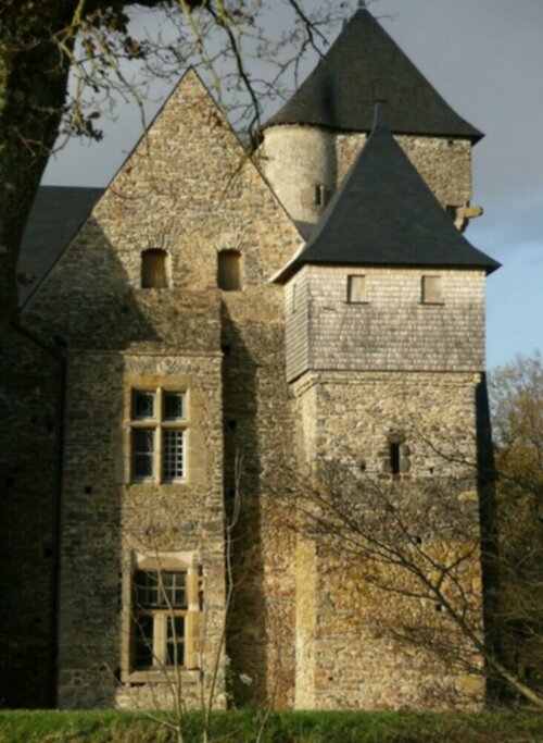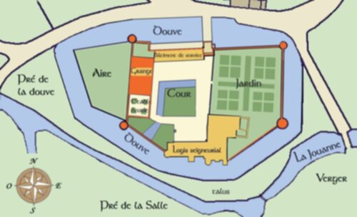 Au fond de la cour, close par un mur d’enceinte garni de bouches à feu défendu par deux tours de guet, le logis seigneurial est constitué de trois bâtiments d'époques différentes.