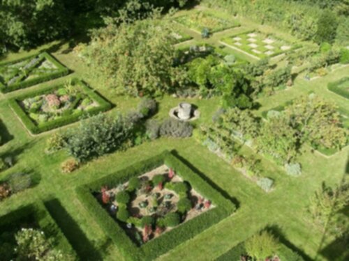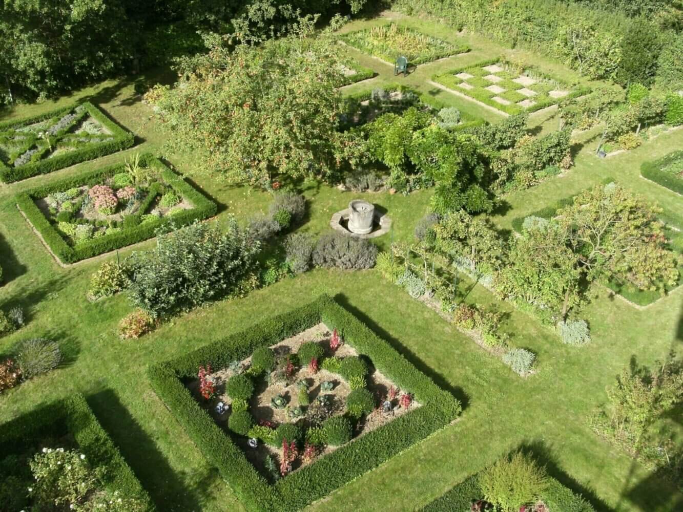 Au pied du donjon, un jardin d’esprit renaissance, structuré par quatre allées qui, se rejoignant autour d’une petite fontaine au centre, encadrent des parterres de buis exécutés selon les dessins d’Olivier de Serres, a été recréé à son ancien emplacement. Ce jardin était autrefois clos par un mur d'enceinte flanqué de deux tours rondes