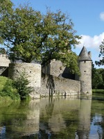 Du côté du jardin, le donjon ou « tour de Gloriette » domine de ses trois étages les logis seigneuriaux. Bâti vers 1480, il contient un escalier monumental en granit, surmonté d'une chambre voûtée d'ogives ; au sommet, le chemin de ronde est porté par une couronne de mâchicoulis.