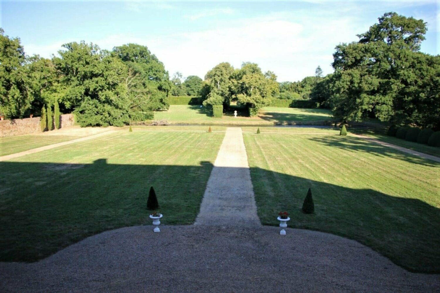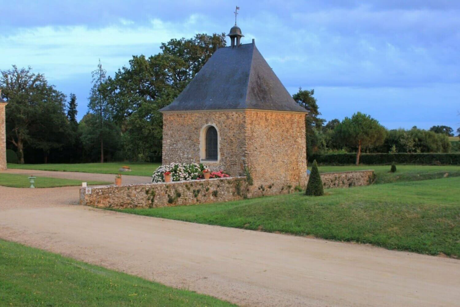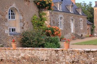 A gauche, un pavillon d’angle fait pendant à la chapelle et précède une élégante maison du début du XVIIIème siècle. Au fond de la cour vous admirerez le château, sa façade sobre, élégante et très bien équilibrée, la belle élévation de sa toiture.